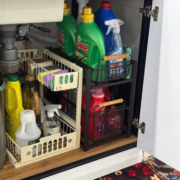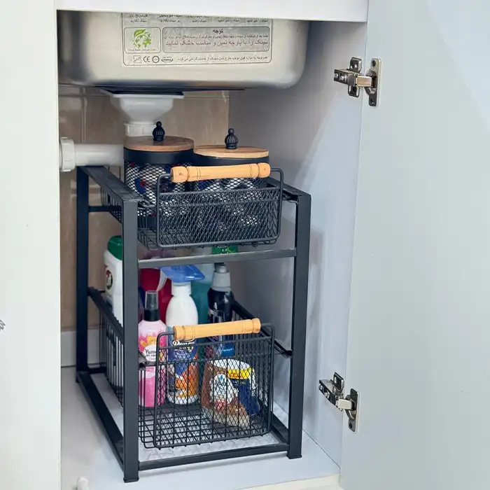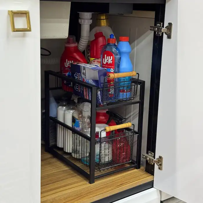 استند نظمدهنده هرمس مشکی کشویی مخصوص مواد شوینده | کد ۸۱۳۶