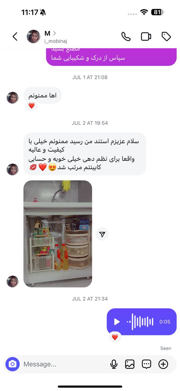 از اینکه برای نظمدهی و زیبایی خانهتان ما را انتخاب کردید، صمیمانه سپاسگزاریم. شفافیت و رضایت شما برای ما...